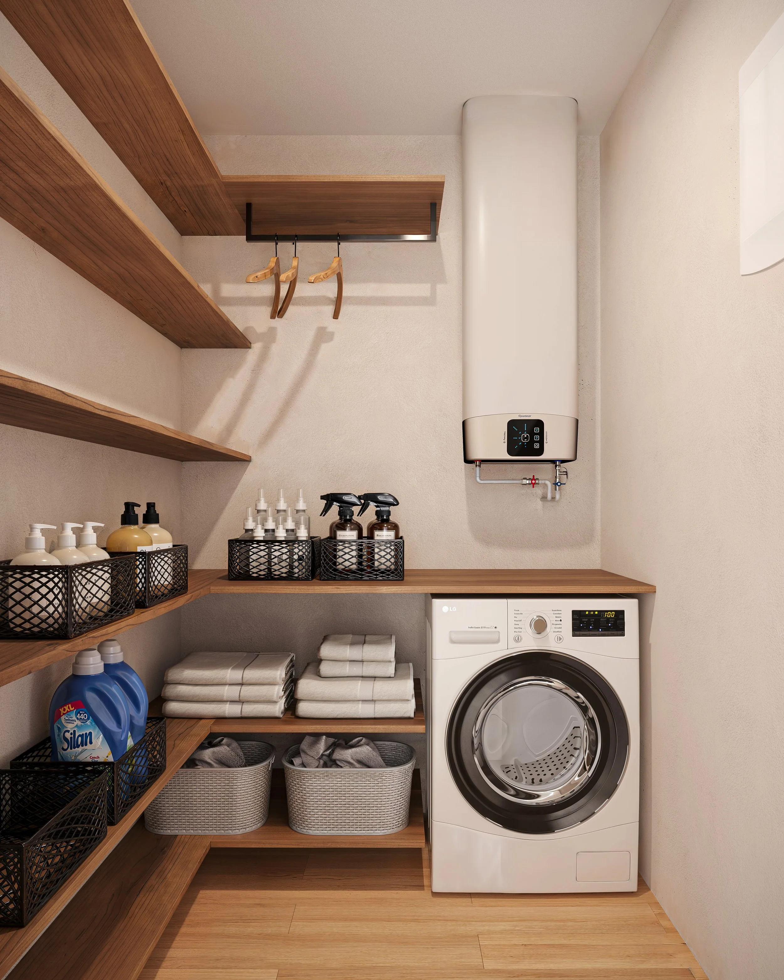 • Mobilier sur mesure intégré: entrée, buanderie, chambres et cuisine, dans une harmonie esthétique cohérente